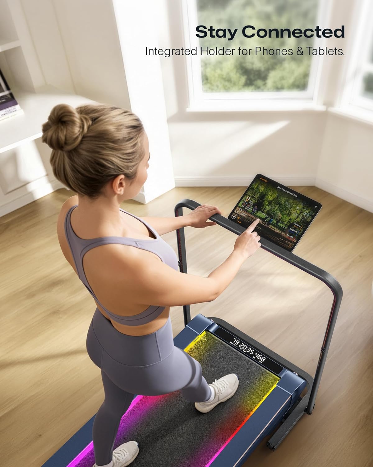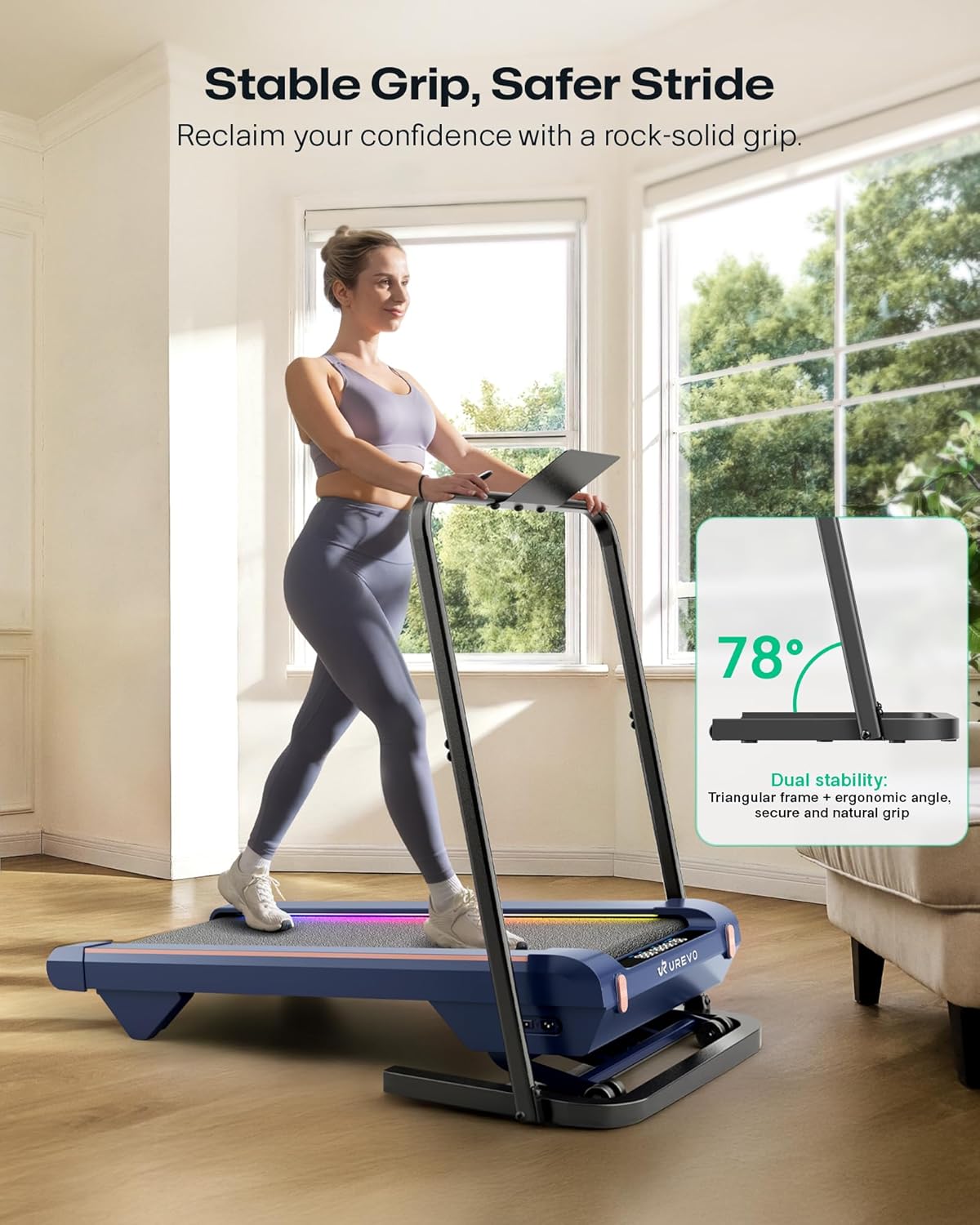 šćNon-Slip StandćStay connected and entertained during your workout with the UREVO handlebar’s non-slip stand. Perfect for holding your phone or tablet, it keeps your device secure while you walk or run. Stay productive, catch up on calls, or enjoy your favorite shows while keeping your workout on track.